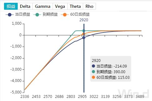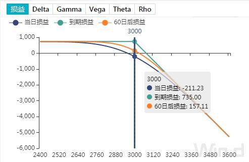 图12 卖出认购期权m2101-C-3000的损益图模拟结果