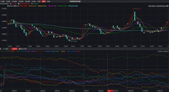 图11 豆油2101/豆粕2101比价周线图及季节性走势