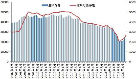 图9 全国生猪和能繁母猪存栏(单位:万头)