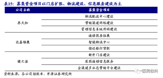 从各拟上市药房招股书中的募集资金运用可以发现,拟上市药房募集资金项目以外延扩张、内生增长为主。