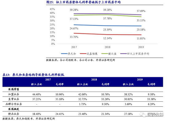 2.4.1、行业毛利率持续下滑,由于规模效应,拟上市药房毛利率普遍低于上市药房平均