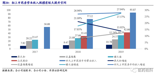 目前以拟上市药房为代表的区域连锁收入规模与上市药房平均有一定差距,随着未来成功上市,整体收入规模还有很大提升空间。