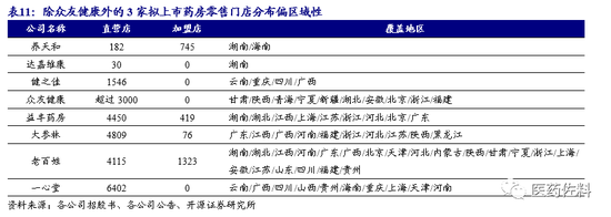 2.3、 拟上市药房门店数量、分布区域有较大提升空间