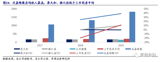 2.3.2、单店运营效率:达嘉维康最高,养天和、健之佳低于百强平均