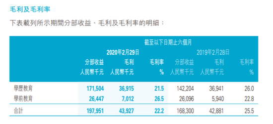 截至2020年2月29日的上半年,公司幼儿园收入2645万元,营收占比13.4%,毛利701.2万元,毛利率26.5%。