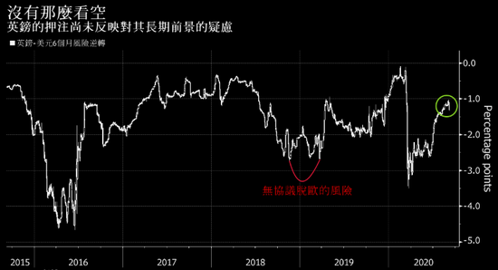 这种想法也反映在外汇市场上。风险逆转是衡量市场情绪的一种指标,目前表明英镑投资者对未来六个月的看空意愿不如2018年和2019年,当时外界多半认定会无协议脱欧。