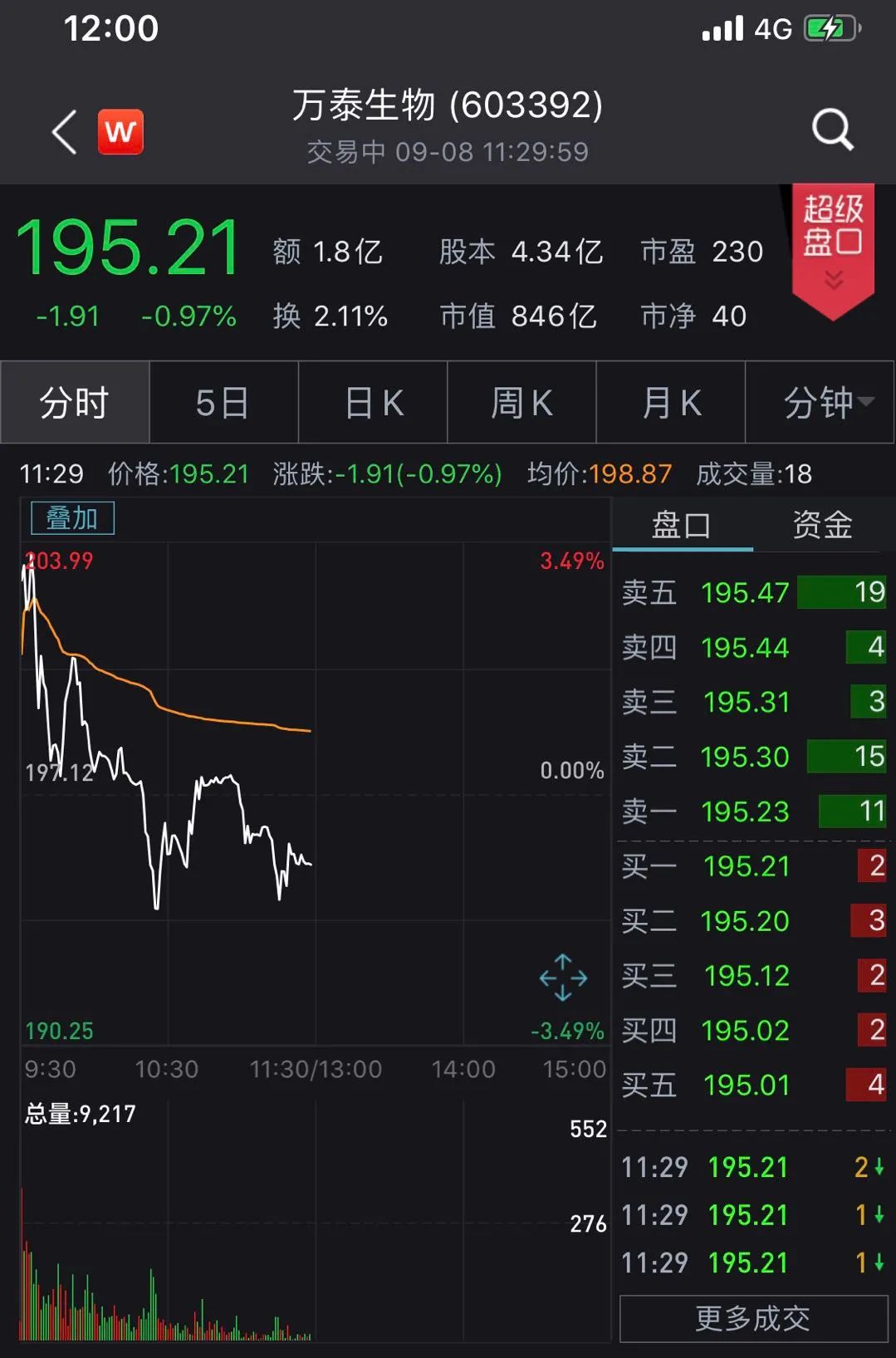 9月8日开盘,万泰生物每股报200元,总市值为868亿元。按此计算,钟睒睒持股万泰生物的最新市值约652亿元,两家公司合计,让钟睒睒身价达到4086亿元(598亿美元),超过福布斯最新排行榜上的马化腾(568亿美元),跃居中国新首富。不过此后农夫山泉和万泰生物股价双双回落。