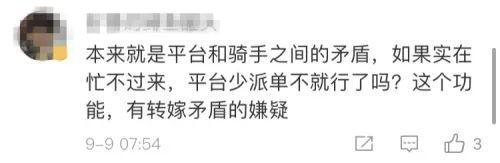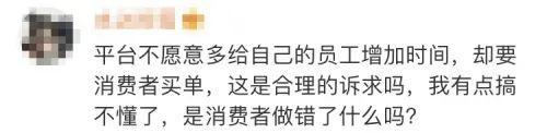 声明一经发布,再次掀起舆论波澜。有人认为这一改变非常人性化;有人质疑,平台闭口不提派单系统给骑手带来的压力,却将责任转移给消费者,让用户有种被道德绑架的感觉;也有网友提出,这个功能无法从根本上解决问题,情况还是不会改变。