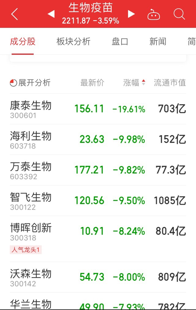 A股疫苗概念遭遇重挫