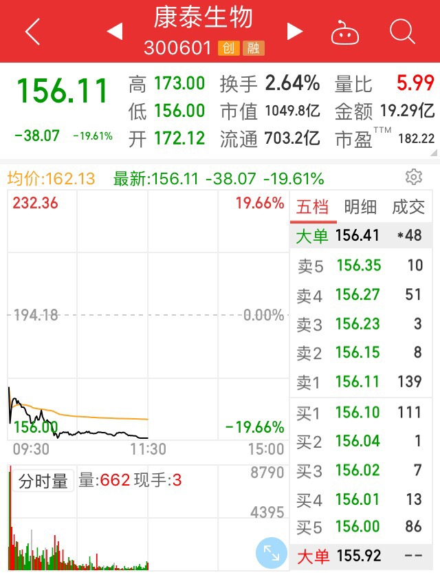 受阿斯利康叫停测试消息影响,A股生物疫苗概念9日遭遇重挫,截至午间收盘,康泰生物大跌19.61%,逼近跌停。智飞生物跌逾9.5%,万泰生物、海利生物逼近涨停,沃森生物、华兰生物等跌幅超7%。