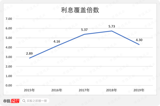 由于公司净利润的增长速度较快,公司的利息覆盖倍数在2016年-2018年呈上升趋势,但由于2019年加杠杆过猛,倍数降至4.3,总体看偿债能力仍较好,但2019年已经出现下滑,如果2020年仍维持高强度扩张,偿债风险可能会加大。