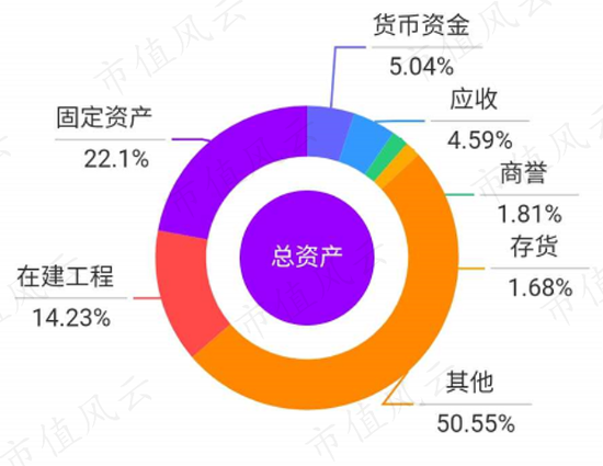 其中占比较大的是无形资产(40.91%)、固定资产(22.1%)和在建工程(14.23%)。