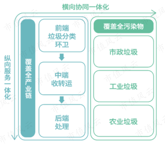 根据公司年报表述,公司目前正推动固废业务纵横一体化发展,纵向是指从环卫清扫、垃圾分类、垃圾收转运至焚烧发电、渗滤液处理的完整链条,横向是指覆盖生活垃圾、餐厨垃圾、污泥和工业危废等全污染物。