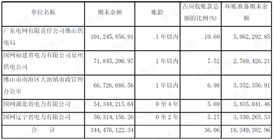 其中前五大欠款方有4家为电网客户,这部分客户信用较高,账龄基本在1年以内,因此风险较小。