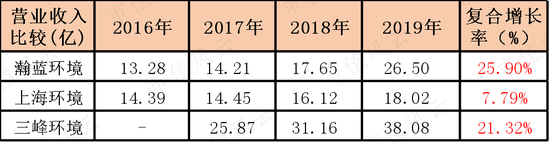 瀚蓝环境的营收从2016年的13.28亿增长至26.5亿,复合增速达25.9%,高于上海环境和三峰环境,上海环境的发展明显相对较慢。
