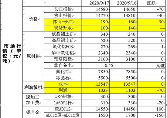 隔夜沪铝主力 2010 震荡偏强,较上一交易日结算价下跌 0.03%;沪铝总持仓 302838,增仓 1158。昨日长江现货升水沪铝 100 元/吨,佛山升水长江 190 元/吨。