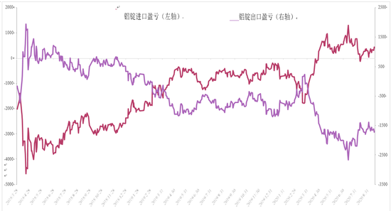 图表 3:铝进出口盈亏