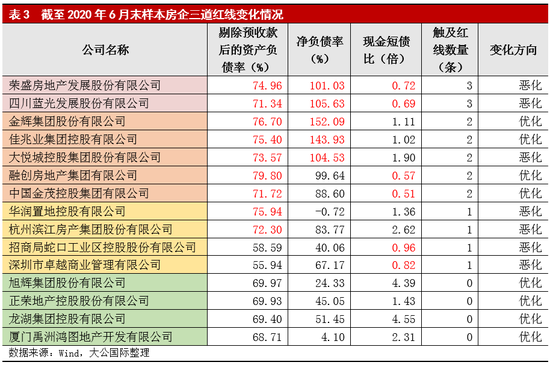 如果以“三道红线”标准来考量,从2019年末到2020年中,50家样本房企的财务表现在分化中。