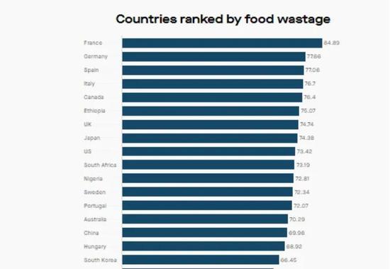 据《经济学人》信息社及巴里拉食品和营养中心发布的数据,2019年全球粮食浪费最严重的前10个国家中,有8个是发达国家,法国排名第一。