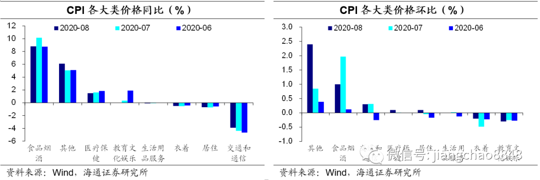 8月CPI同比明显回落,主因去年8月开始猪价环比的大幅跳升,导致食品CPI环比在8-10月连续3月位于3%以上。而高基数的影响短期仍将持续,未来数月食品价格对CPI拉动作用预计继续减弱,全年CPI将呈现“前高后低”的走势。