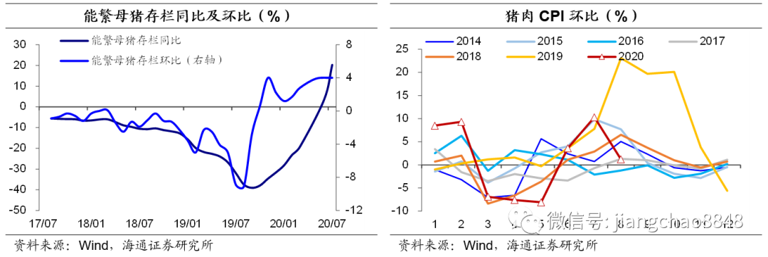 从CPI波动最大的分项猪价看,旺盛需求下,猪价短期或继续高位运行。近期供给压力有所缓解,使得猪价环比涨幅明显收窄。但中秋、国庆双节将至,猪肉备货需求有望实现明显的增长,将支撑猪价延续6月以来的高景气度。中长期看,下半年能繁母猪存栏量同比已回升转正,供给端压力将有望逐步改善,长期猪价持续上涨概率较小。对CPI的拉动方面,受去年同期猪价环比高基数的影响,猪价CPI同比涨幅将继续收窄,对CPI的拉动作用将明显减弱。