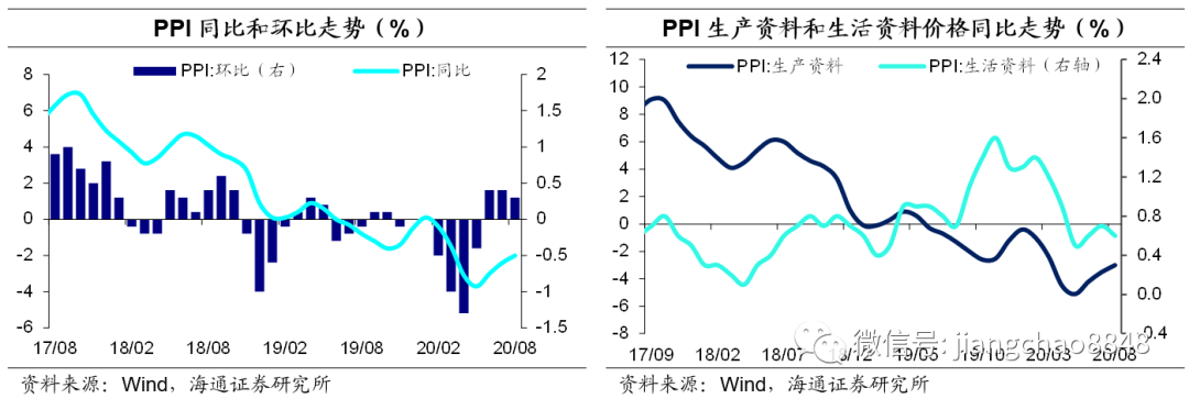 未来工业品价格仍有支撑。一方面,海外多国推进复工复产,8月美、日制造业PMI继续回升,欧元区PMI则保持线上稳定。我国出口增速回升也印证了外需的逐步恢复。另一方面,我国基建、地产投资增速持续高位,在地方政府专项债加速发行、房贷利率小幅下降的带动下,投资高景气度预计延续,均有助于支撑工业品价格,不至于出现大幅下滑。
