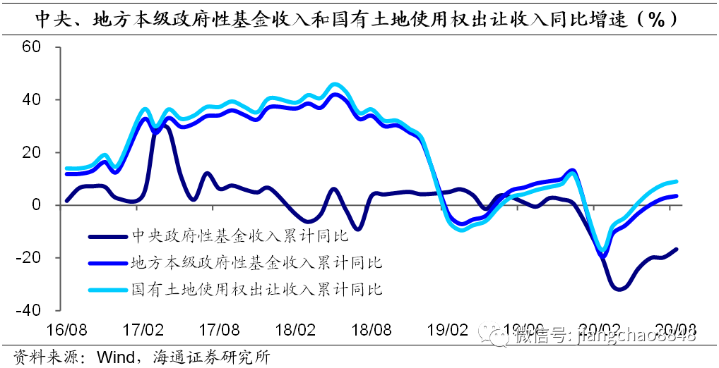 8月全国政府性基金收入累计47030亿元,累计同比增速2.3%,较1-7月增速继续上行,其中中央增速降幅收窄至-16.7%,地方增速继续上行至3.5%,国有土地使用权出让收入增速有所回升至9%。