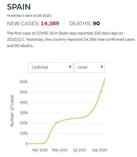 据约翰斯·霍普金斯大学数据显示,截至目前,西班牙日新增高达14389例,累计确诊640040例,增速仅次于印度、美国和巴西。