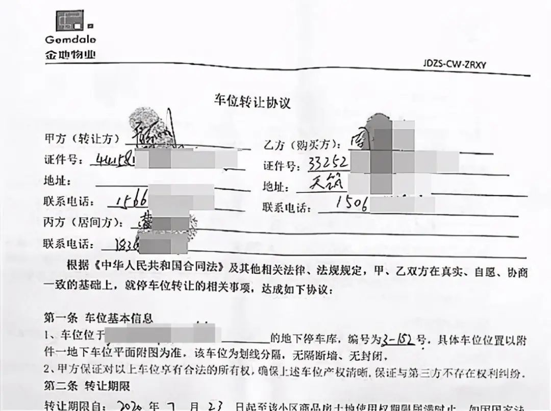 荔先生就是其中一个。荔先生说,自己与曹某星签订车位交易协议是在9月1日上午9点,地点就在小区金地物业服务中心的办公室,这是物业的正常工作时间,当时物业公司的前台、财务人员都在现场。