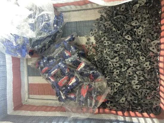 而旁边蓝色筐子里,盛满这位大妈一周的工作量——一万多颗指甲盖大小的擎天柱脑袋。其他同事的身边也有相似的蓝色筐子,里面分别堆放擎天柱和大黄蜂的胳膊大腿。