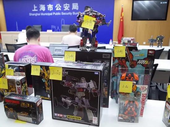 在警方的新闻发布会上,汕头澄海生产的仿制变形金刚被摆到了由孩之宝公司官方出品的变形金刚真身面前,接受到场记者手里镜头的凝视。