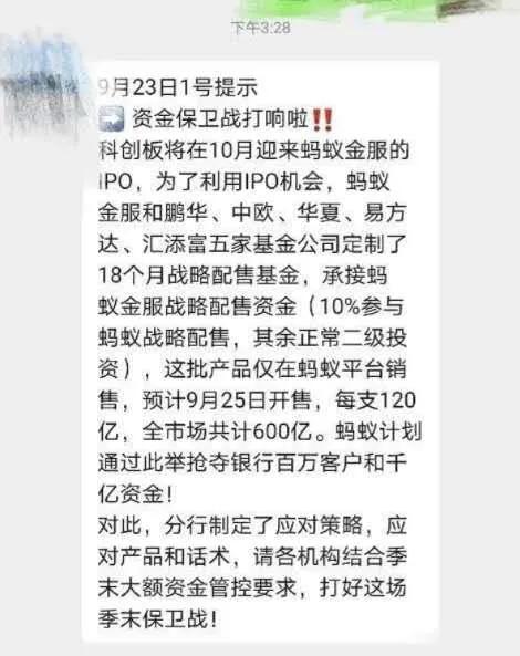 蚂蚁借用上市,定制了五只战略配售蚂蚁的基金,在自家平台独家销售。