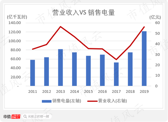 2019年,电力经营区域与宝新能源同属广东省的粤电力A(000539.SZ)售电量为711.75亿千瓦时,约为宝新能源的5.86倍,发电业务收入是宝新能源的5.12倍。
