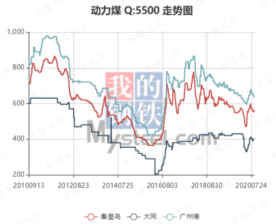 (国内2010.9~2020.9.10动力煤价格,来源:我的钢铁网)