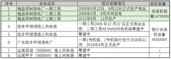 目前,陆丰甲湖湾电厂、陆丰甲湖湾陆上风电场的部分机组仍在筹建中。