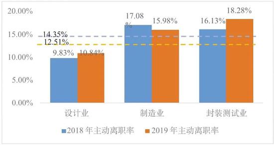 2018 和 2019 年集成电路产业链从业人员主动离职率