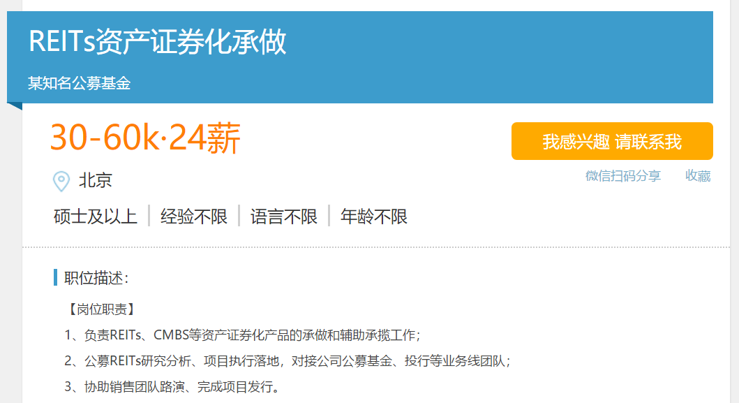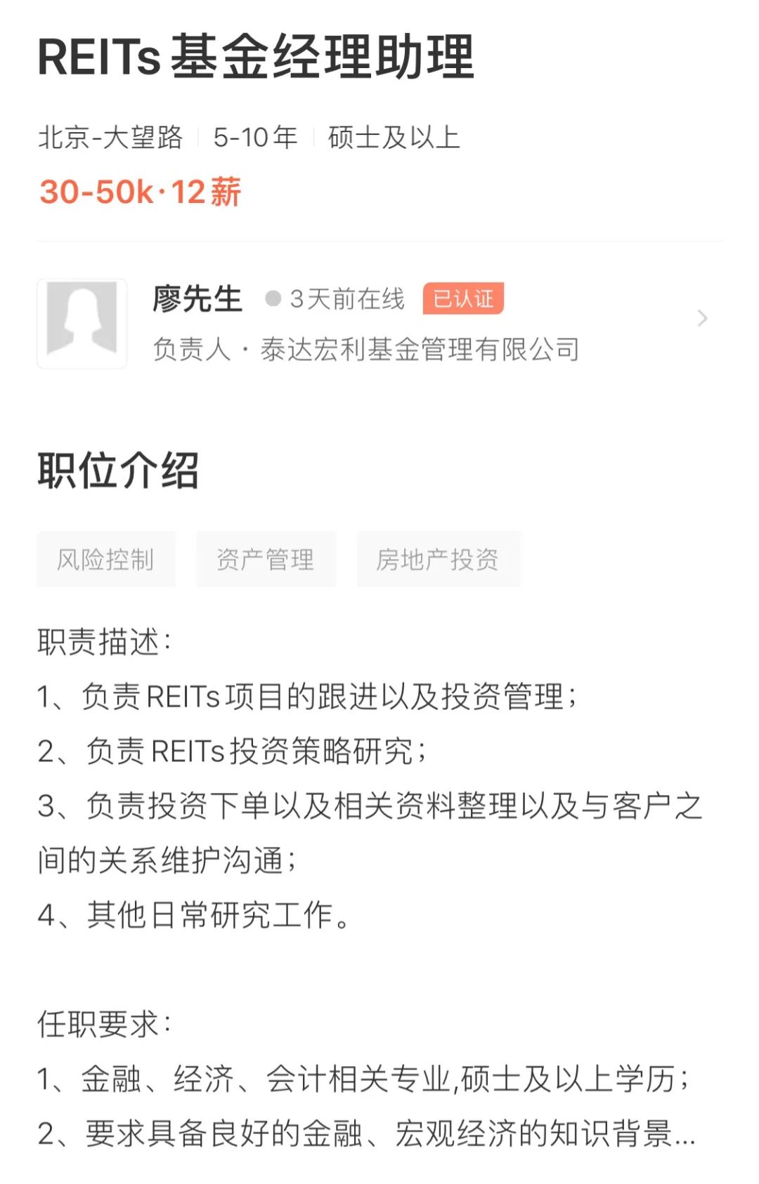 图片来源:猎聘网不少REITs相关岗位,年薪甚至可以达到百万!