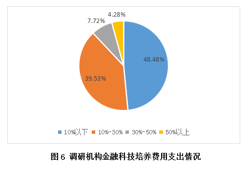 四是机构加大金融科技专项培训费用支出,针对管理层、金融科技人员及其他员工的需求特点开展不同主题的专项培训学习。