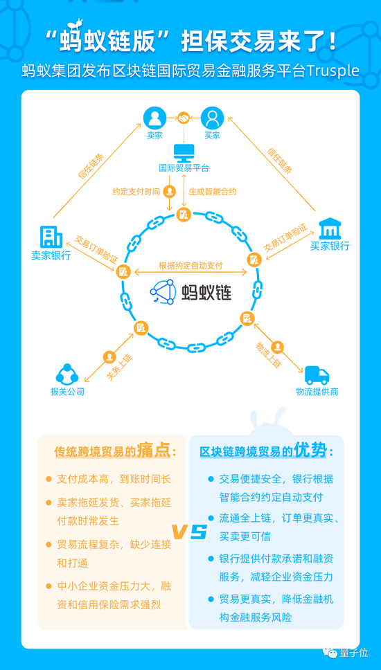 蒋国飞比喻,Trusple平台就像是蚂蚁修筑的一条全新高速公路,让全球贸易流程更高效,而渣打等在内的跨国银行,就是高速上的服务站,服务站越多,生态越繁荣,行进在高速上的中小企业越便利。
