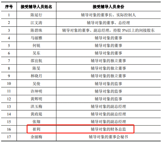 在崔利上任财务总监之前,罗普特上一任财务总监为公司实控人陈延行的姐姐陈碧珠。
