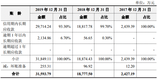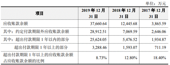 各期,公司应收账款余额分别为0.39亿元、1.24亿元、3.77亿元,其中逾期应收账款分别为2646.06万元、7069.59万元、2.89亿元。