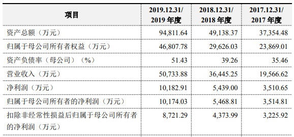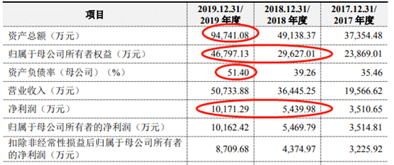 5月版招股书显示,罗普特2019年资产总额为94,741.08万元,资产负债率(母公司)为51.40%;2018年、2019年,公司归属于母公司所有者权益分别为29,627.01万元、46,797.13万元;净利润分别为5439.98万元、10171.29万元。