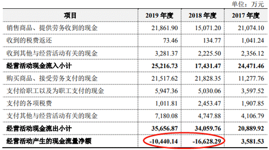 据最新招股书,2017年-2019年,罗普特营业收入分别为1.96亿元、3.64亿元和5.07亿元,销售商品、提供劳务收到的现金分别为2.11亿元、1.51亿元和2.19亿元。