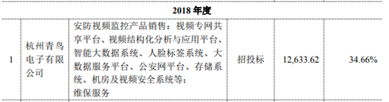 2018年,罗普特对第一大客户杭州青鸟电子有限公司(以下简称“杭州青鸟”)实现销售收入1.26亿元,占当期销售总额比重的34.81%。
