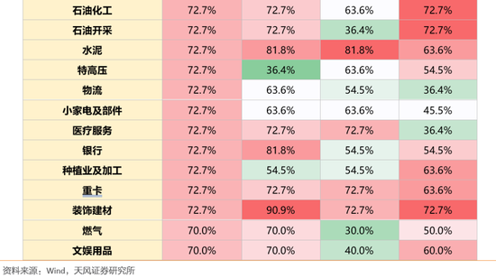 从跑赢大盘的角度来看,工程机械、航空、肉制品、水泥、重卡等跑赢大盘概率较高,超过70%。10月份,保险板块跑赢大盘的概率超80%。