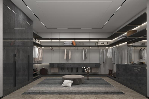 为了尽显产品的“高贵”气质,星影采用一门到顶的超高门的极致设计,高度达到2.78米,且无拼接,更显奢华,更流畅。值得关注的是,索菲亚星影系列产品基材选用的是索菲亚康纯板,在制造过程中使用无醛添加胶粘剂,不含甲醛也不分解甲醛。