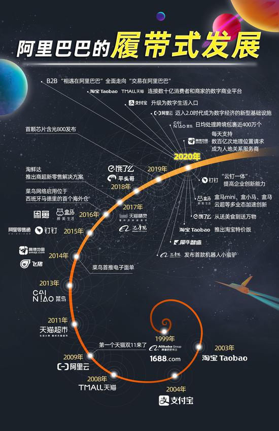 在这当中,技术起到关键作用。多年来,阿里技术和商业的红利互相灌溉,一方面持续提升自身运营效率,一方面不断培育新的机遇萌芽。张勇多次强调,阿里是一家用技术创新带来商业创新,并将技术与商业完美结合的公司。去年,阿里巴巴核心系统已实现100%上云,AI能力与业务场景的结合越来越广泛。近几年来陆续浮出水面的盒马、钉钉、新制造平台“犀牛智造”等,无不是技术融于商业、产业后诞生的新物种。