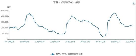截止至2020年09月18日,上游西部地区生产企业聚氯乙烯库存是32,900吨,处于历史平均水平;下游华东华南地区聚氯乙烯库存是254,450吨,处于历史较高水平。