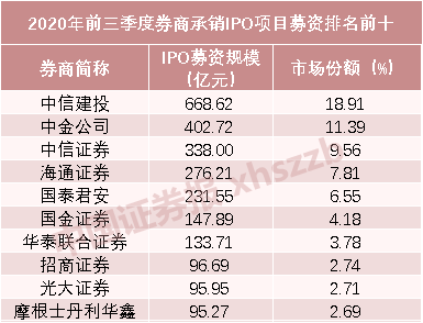 随着三季度行情收官,券商前三季度IPO承销保荐收入情况亦得以揭晓。