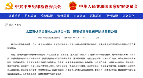 据《中国基金报》报道,高某丛之父高某1正是2018年落马的北京市供销合作总社原党委书记、理事长高守良。